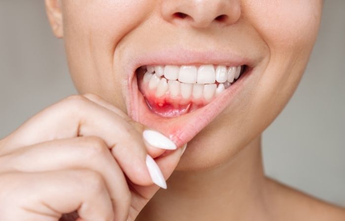 - Swollen gums or painful swallowing