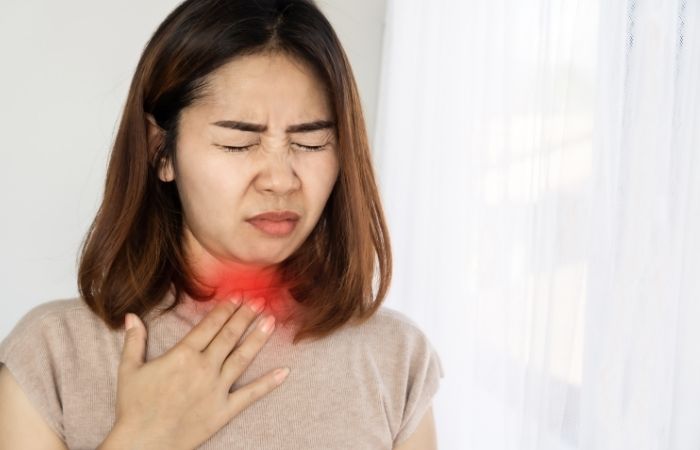 Sore throat, difficulty swallowing, throat irritation, swollen lymph nodes, or no symptoms at all. It often gets mistaken for a cold or strep.
